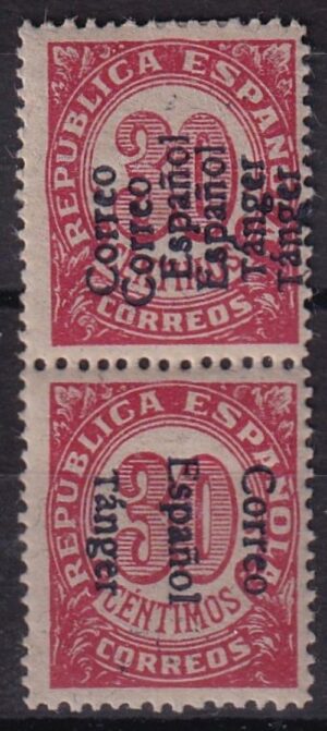 Preciosa pareja vertical, un sello con doble sobrecarga y el otro sello con la sobrecarga invertida.
