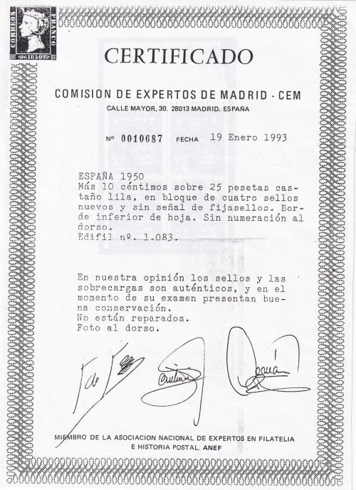 Precioso con borde de hoja. Copia del certificado Cem del bloque de cuatro del que procede.