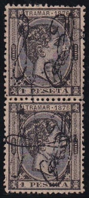 Preciosa pareja vertical, un sello sin tercera firma (superior), muy rara.