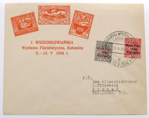 13/V/1934. Precioso sobre decorado con matasello especial Exposición de Katowice.