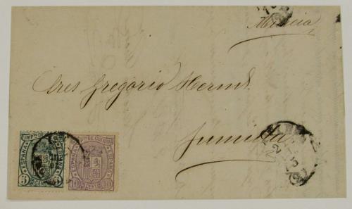 Muy bonita carta de Barcelona a Jumilla, rara solo con sello de impuesto de guerra
