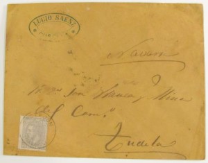 Sobre comercial de Corello, el sello inutilizado con fechador de Castejón a Tudela (regular conservación)