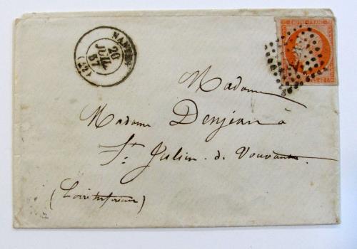 1857. Bonita carta rombo de puntos 2221, de Nantes a Chateaubriant.
