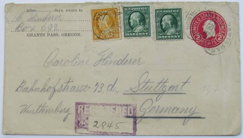 1924. Bonito Entero Postal de 2c certificado de Oregon a Alemania.