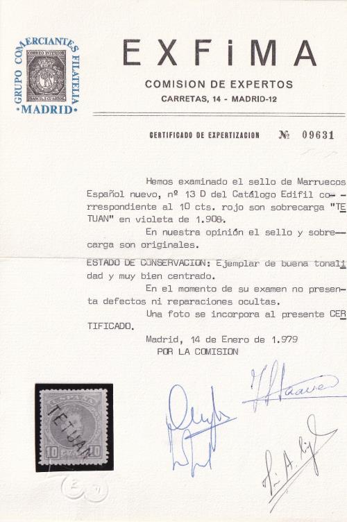 1908. Precioso con sobrecarga violeta, nº 17hcc tipo I. Certificado Exfima.