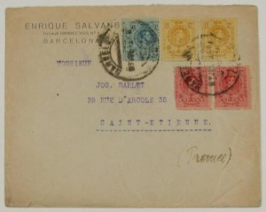 Interesante carta con franqueo tricolor de Barcelona a S. Etienne (Francia)