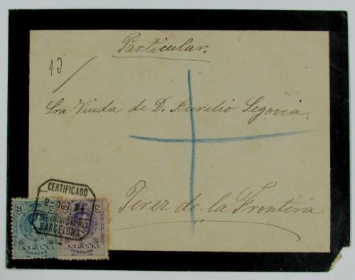 4/octubre/1914, bonito sobre certificado de Barcelona a Jerez de la Frontera