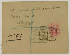 25/ febrero/1920, muy bonito certificado Fuente La Higuera (Valencia) a Madrid