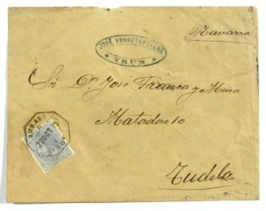 Sobre con matasello ambulante de Irun a Tudela, conservación regular.
