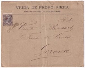 1894. Muy bonita carta a Gerona con marca Barcelona Franco, muy rara.
