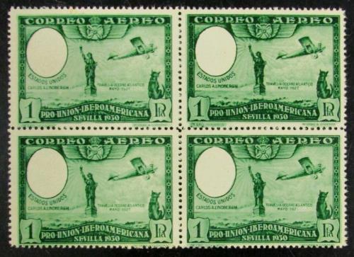 Muy bonito, bloque de 4, error de impresión sin efigie, 1 sello manchita al dorso