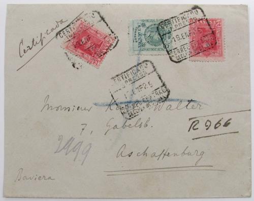 19/ene/1925. Muy bonito sobre con matasello de Impresos Certificados Sección Nocturna de Madrid a Alemania.