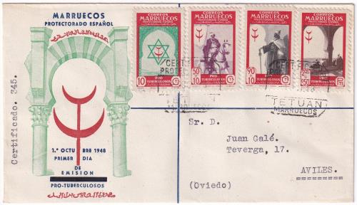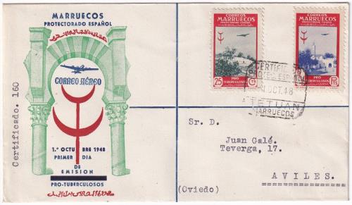 1/oct/1948. Preciosa serie en dos Sobres de Primer Día, circulados a Avilés.