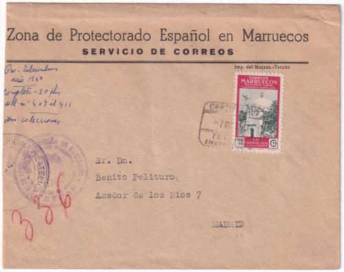 7/oct/1950. Certificado de Tetuán a Madrid.
