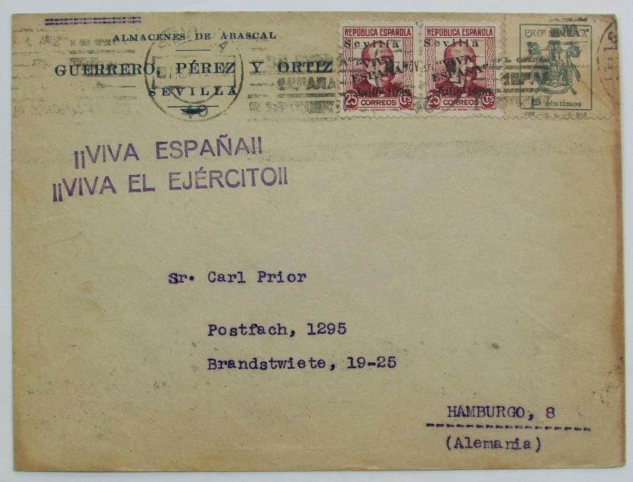 Pareja de 25c+5c benefico local en precioso sobre se Sevilla a Hamburgo- Alemania.