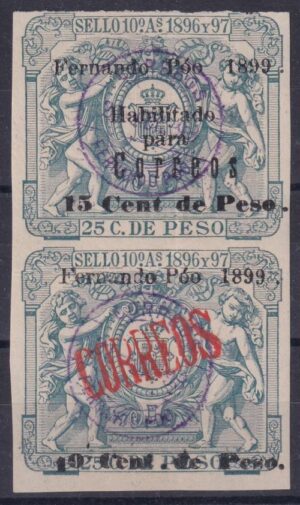 Muy raros unidos en pareja vertical, precioso aspecto pese a ligera doblez. En el catálogo del 2007 marcaba 39500€.