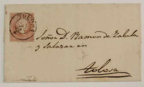Muy bonita envuelta con fechador de Tolosa con * tipo I, circulada en el interior. Rara con 4c de franqueo.