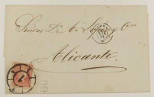 Falso Postal en carta con carreta nº1 de Madrid a Alicante.