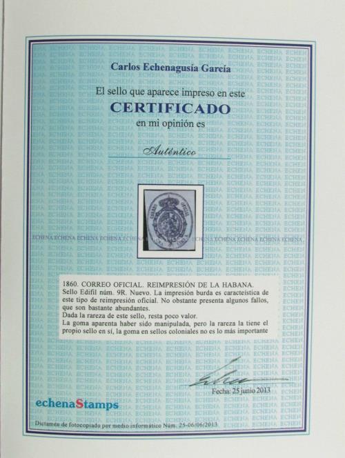 Precioso y rarisimo ejemplar nuevo con algunos fallos que no restan valor al sello, certificado ECHENA.