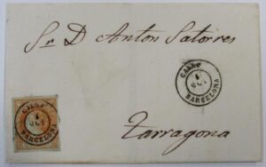 Preciosa envuelta con fechador de Calaf (Barcelona), tipo II, sin año a Tarragona.