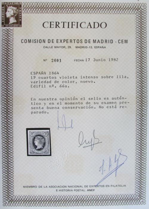Muy bonita serie. El 19c (nº66 valor clave) con Certificado CEM.
