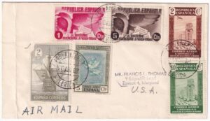 Muy bonito sobre filatélico de Pobla de Segur (Lérida) a USA.