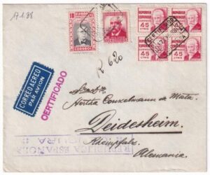 17/ene/1938. Precioso certificado de Barcelona a Alemania.