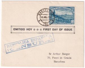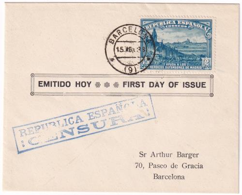 15/abr/1938. Precioso sobre de primer día interior de Barcelona.