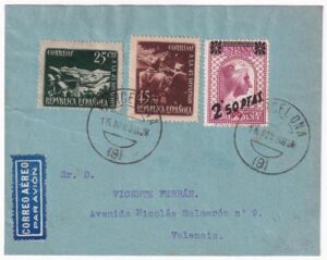 15/nov/1938. Precioso sobre de Barcelona a Valencia, sin llegada.