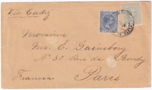 1896. Preciosa carta de Playa de Mayaguez a París.
