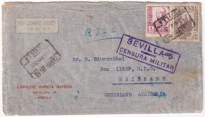 18/mar/1938. Bonito certificado de Sevilla a Australia.