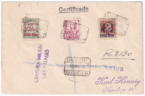 1938. Muy bonito certificado del Puerto de la Luz a Alemania.