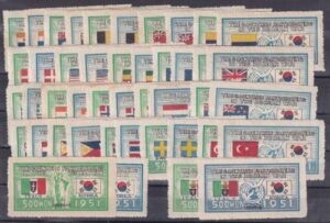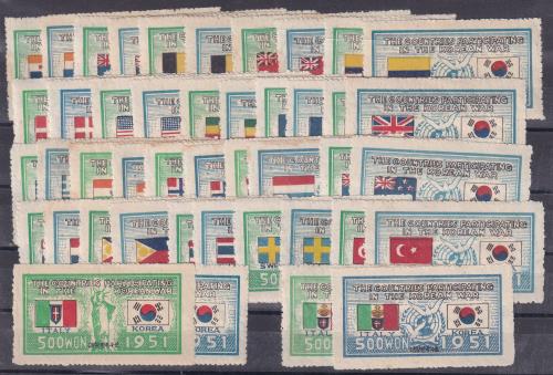 1951. Rarísimo juego completo de 42 más 2 errores de Italia con Escudo Real. Bonito pese a varios sellos tonalizados. Sellos ** aunque según el catálogo son (*).