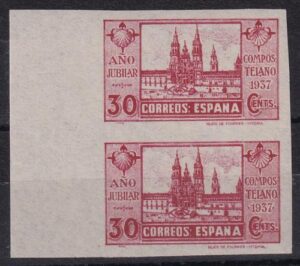 Preciosa pareja, un sello con la variedad de reporte con puntos antes y después de 1937 (·1937·), no catalogado sin dentar.