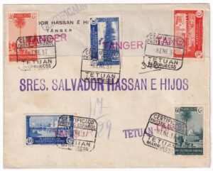 8/ene/1937. Precioso certificado de correo interior con sellos de Marruecos con sobrecarga de Tánger.