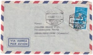 1954. Bonito sobre por avión de Tánger a Alemania.