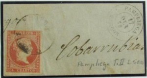 4c sobre pequeño fragmento con fechador de Pampliega – Burgos tipo II, mal estampado.