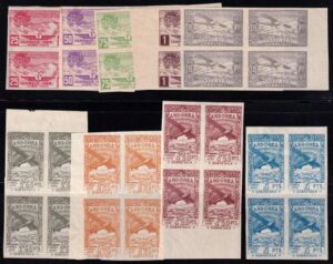 Rarísima serie en bloque de cuatro sin dentar, conservación habitual, sellos con y sin goma, ver.